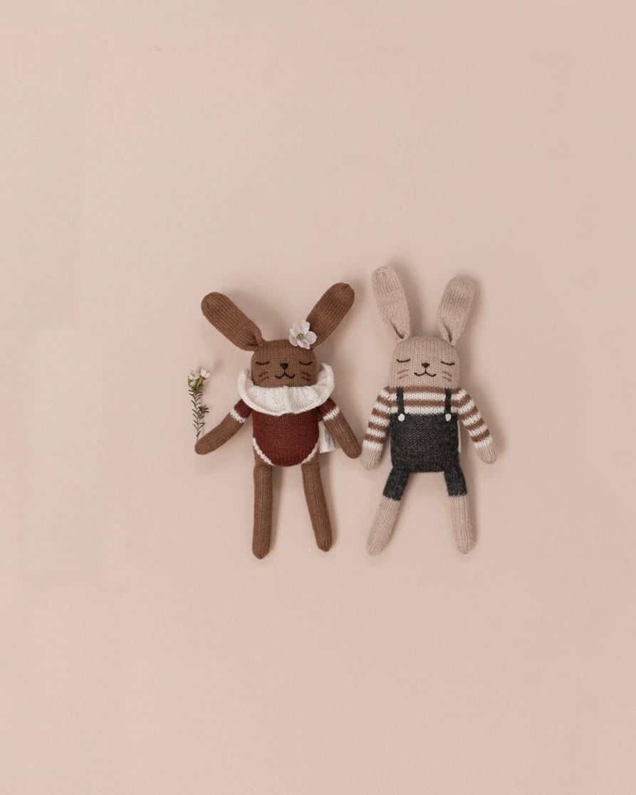 Doudou lapin MAIN SAUVAGE, avec ses grandes oreilles et sa jolie tenue, il fera fondre toute la famille. Sa taille idéale pour les petites mains en fait un adorable cadeau de naissance. Il est réalisé en pure laine baby alpaga, une matière antibactérienne très douce, particulièrement adaptée aux peaux sensibles des bébés.