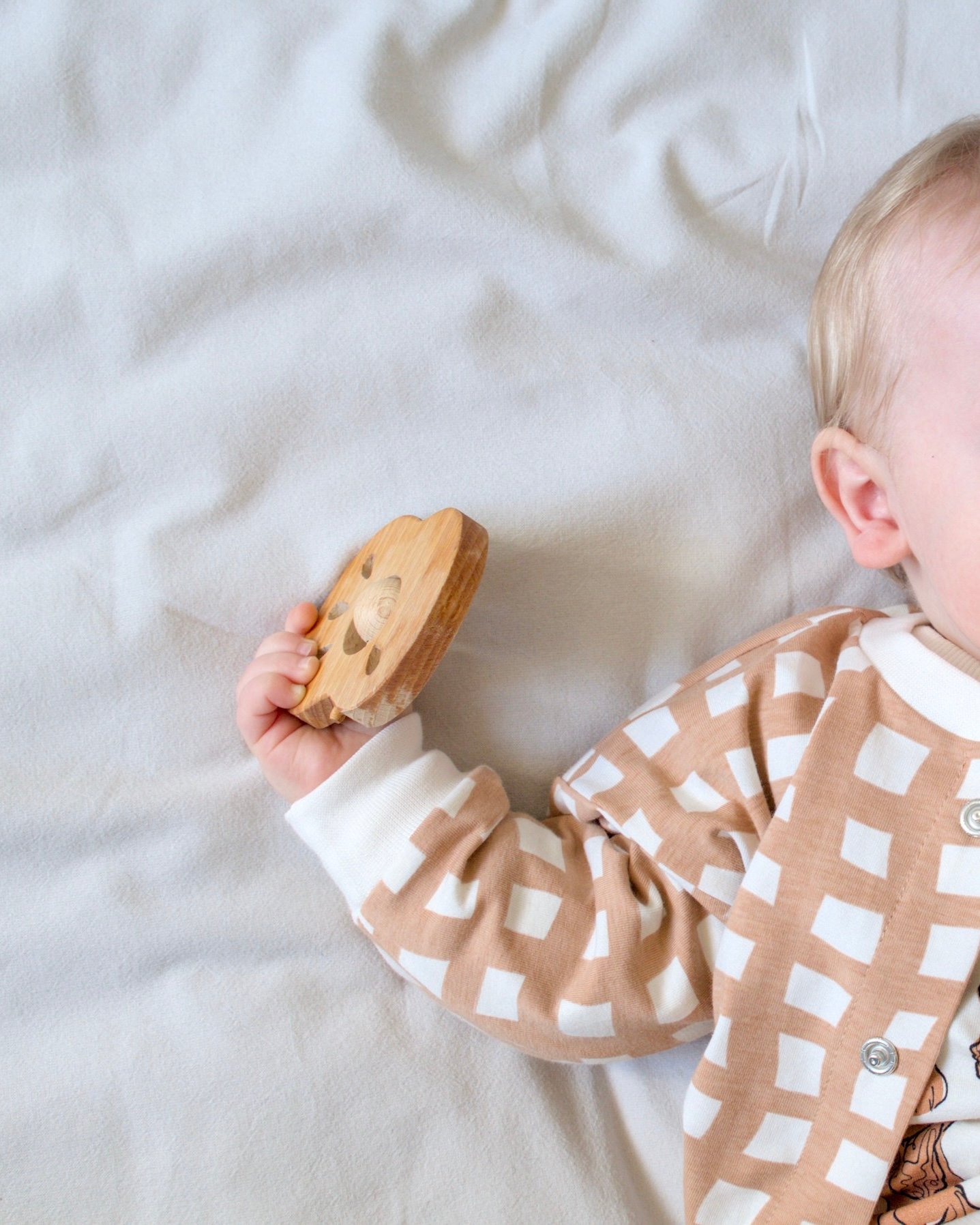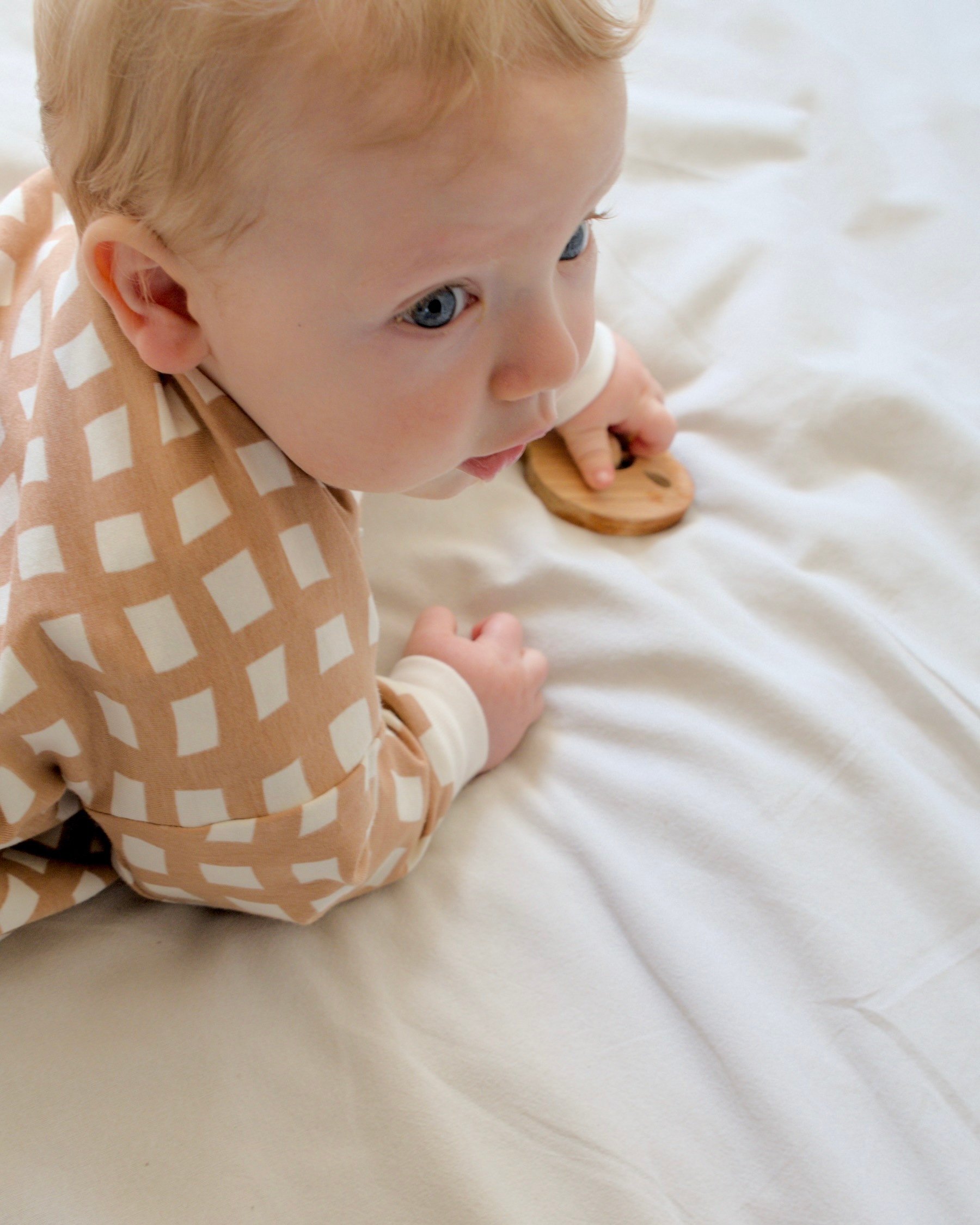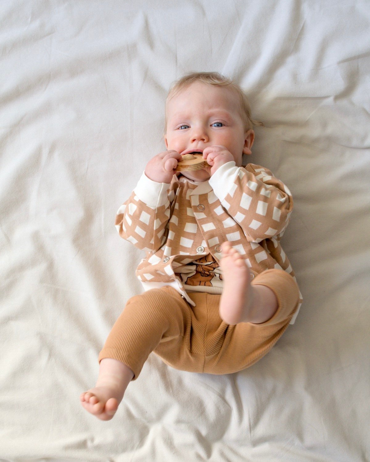 Confectionné en jersey de coton biologique, il allie souplesse et confort. Grâce à ses boutons-pression, il est facile à enfiler, facile à aimer.
