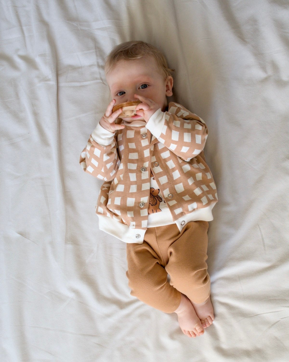Oscar, un gilet tout doux avec une coupe ample pensée pour accompagner tous les mouvements.