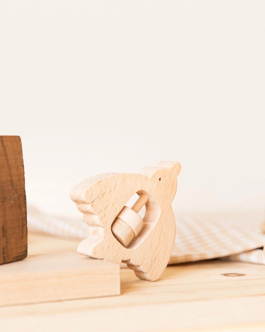 Un jouet en bois brut, sans vernis ni produits, à offrir dès la naissance. Un objet qui va traverser le temps, que ce soit entre de petites mains ou en décoration. Pour jouer avec poésie et simplicité, et s’éveiller au monde doucement.
