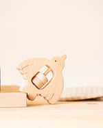 HOCHET MUSCH KMR Childwood, un oiseau en bois, comme un symbole de bienvenue et de beaux jours, avec deux modules au centre stimulant la motricité.