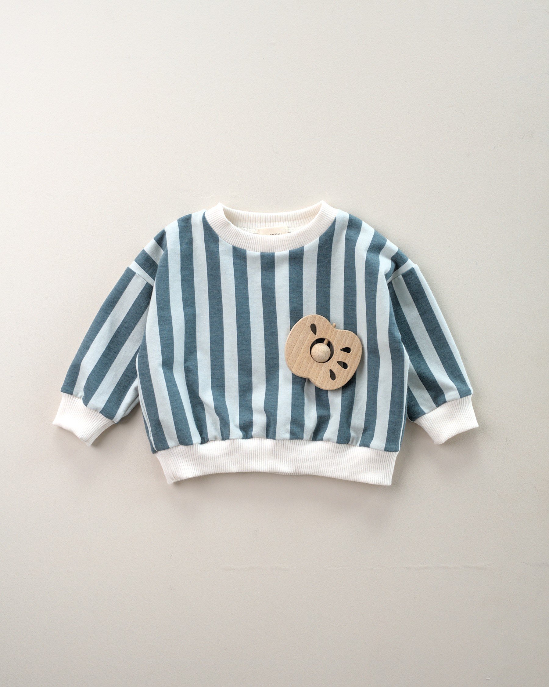 Cette jolie pomme en bois brut a tout pour plaire aux tout-petits : une forme simple à saisir, une bille mobile au centre qui stimule la motricité fine et une fine tranche à mordiller pour soulager les premières poussées dentaires.