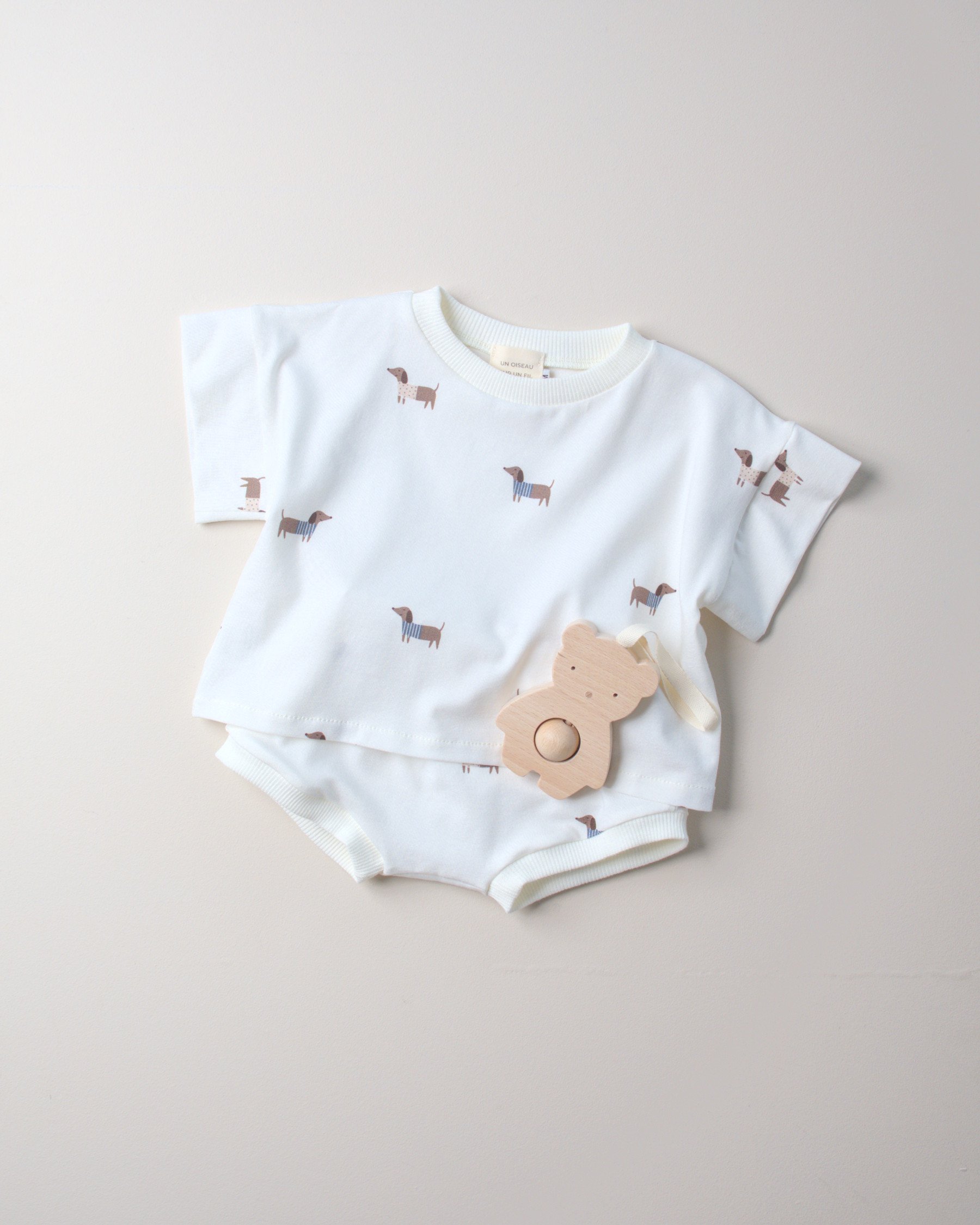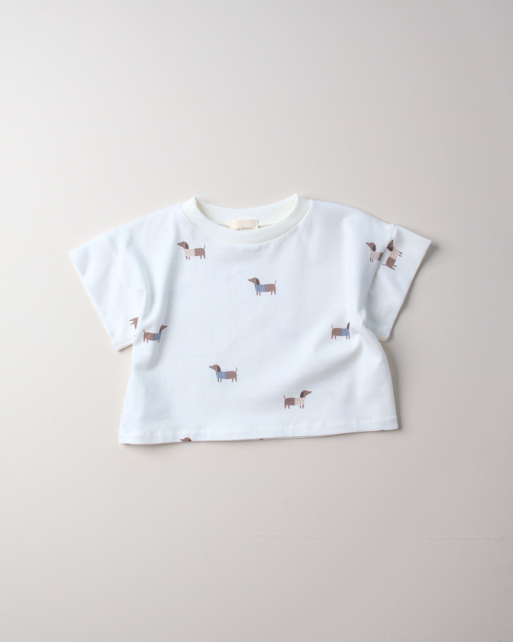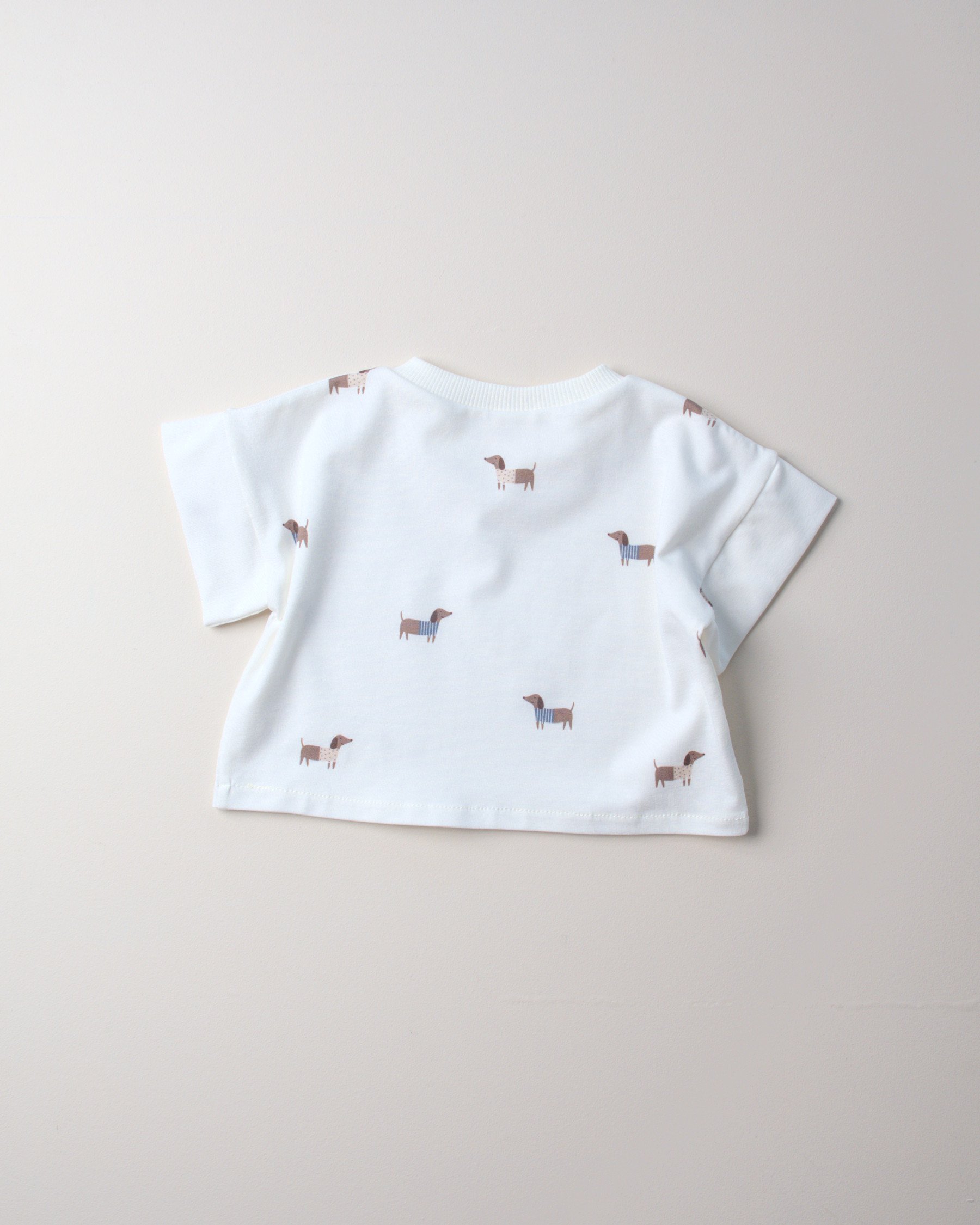 On aime ses jolis petits motifs teckels sur un fond coloris écru.